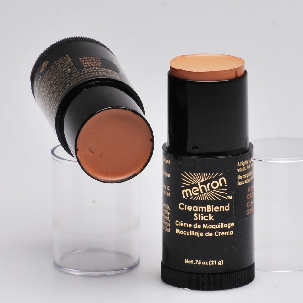 Mehron's CreamBlend Stick Makeup (21 gr) is a highly pigmented, cream make-up. The full-coverage, vegan formula is developed to withstand extreme performance conditions including Broadway's hot stage lights. CreamBlend Stick Makeup is formulated without the petroleum base often found in traditional greasepaint make-up making it easy to blend and lightweight on the skin. This iconic cream face make-up is perfect for stage make-up, pro beauty, Halloween, cosplay, clown make-up, and other types of face and body paint.