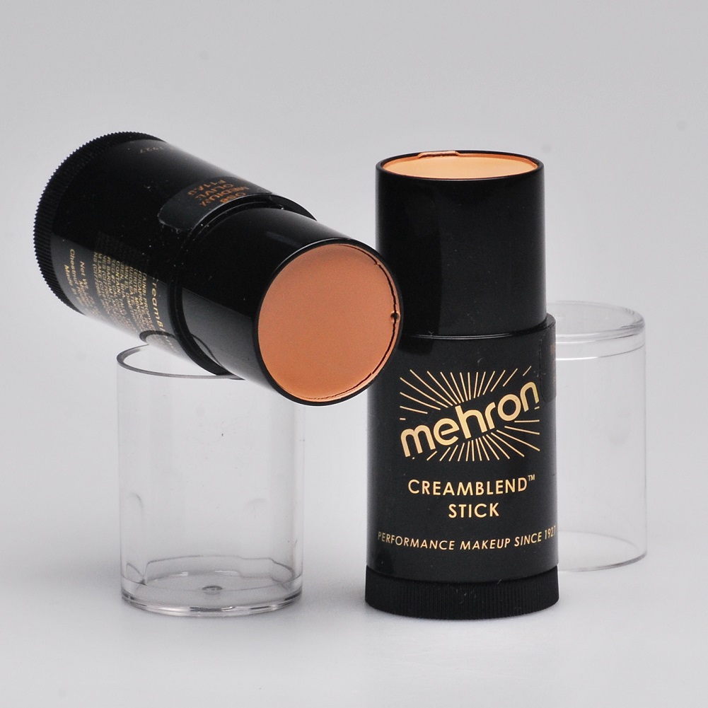 Mehron's CreamBlend Stick Makeup (21 gr) is a highly pigmented, cream make-up. The full-coverage, vegan formula is developed to withstand extreme performance conditions including Broadway's hot stage lights. CreamBlend Stick Makeup is formulated without the petroleum base often found in traditional greasepaint make-up making it easy to blend and lightweight on the skin. This iconic cream face make-up is perfect for stage make-up, pro beauty, Halloween, cosplay, clown make-up, and other types of face and body paint.