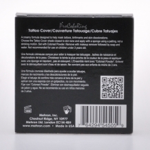 Choose the Tattoo Cover shade closest to skin tone and apply with a sponge using a patting, not a stroking motion. Set with Colorset Powder using a Powder Puff. Remove with Makeup Remover followed by soap and water.