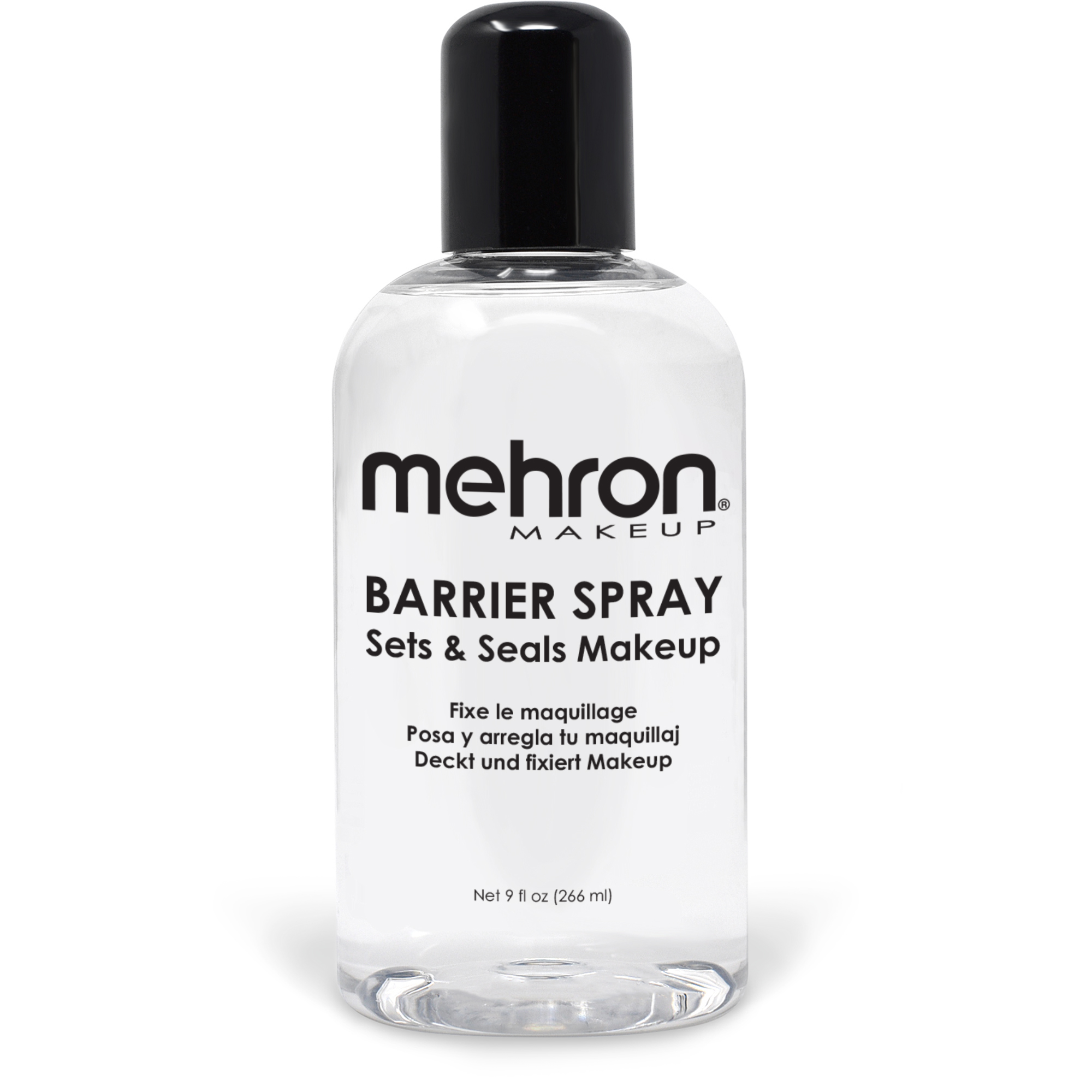 Mehron's Barrier Spray (270 ml) is a professional prep & setting spray to keep makeup locked in place, no touchups needed! Barrier Spray seals your makeup for all-day wear without fading or smudging. Perfect for performers working under hot stage lights, all-day cosplays, maintaining the perfect bridal makeup, and more!