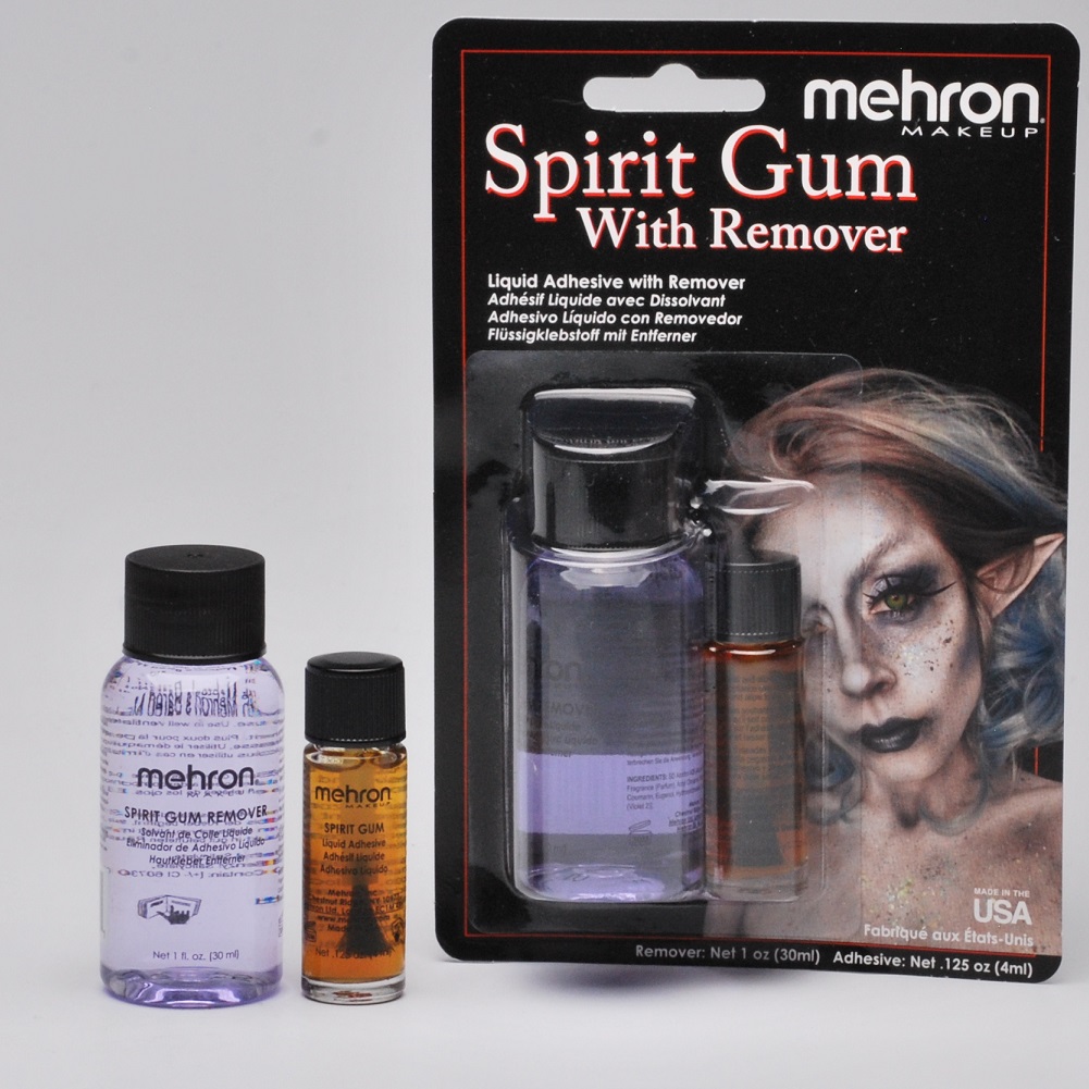 A specially developed solvent to remove Mehron’s Spirit Gum. Apply to the desired area and gently rub until the glue begins to break down. Remove with Mehron’s Bared Makeup Remover and Cleanser. Keep out of reach of children. Do not use near the eyes. If irritation occurs, discontinue use. Use in well ventilated areas. Flammable. Keep away from fire. Available in a variety of sizes.