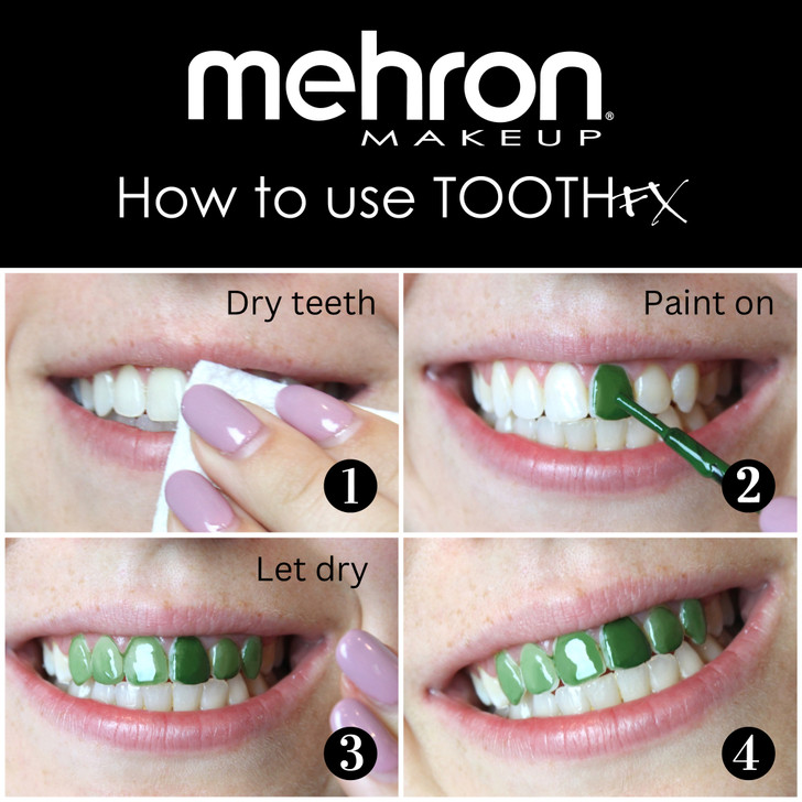 Mehron's Tooth FX is a safe, non-toxic paint-on-tooth color. This tooth paint can give you any fake teeth fx to complete your Halloween makeup, cosplay, and more! The professional formula stays on until you want to remove it and comes in a 4 ml glass bottle with an easy-to-apply brush applicator.